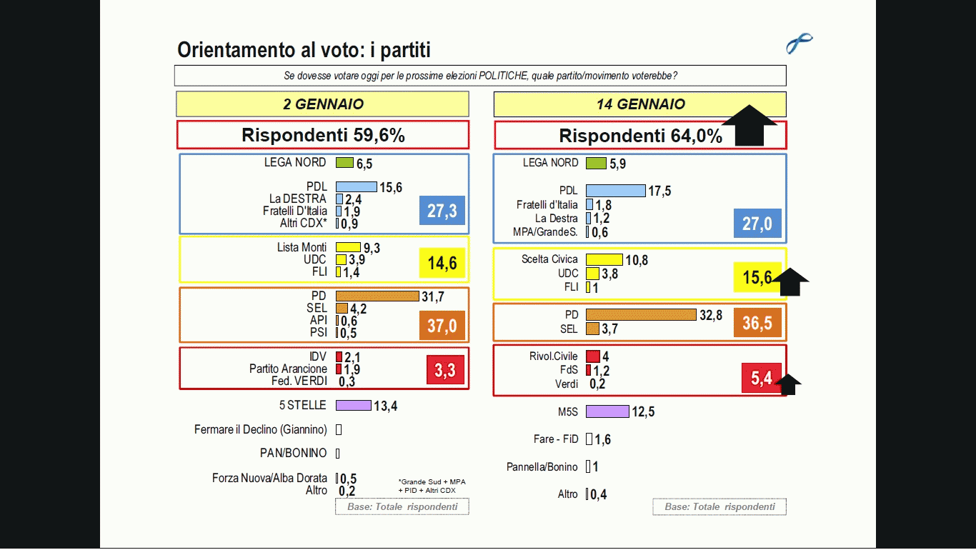 La percentuale di rispondenti sale del 4,4% ed il vantaggio del centrosinistra scende dello 0,2%.