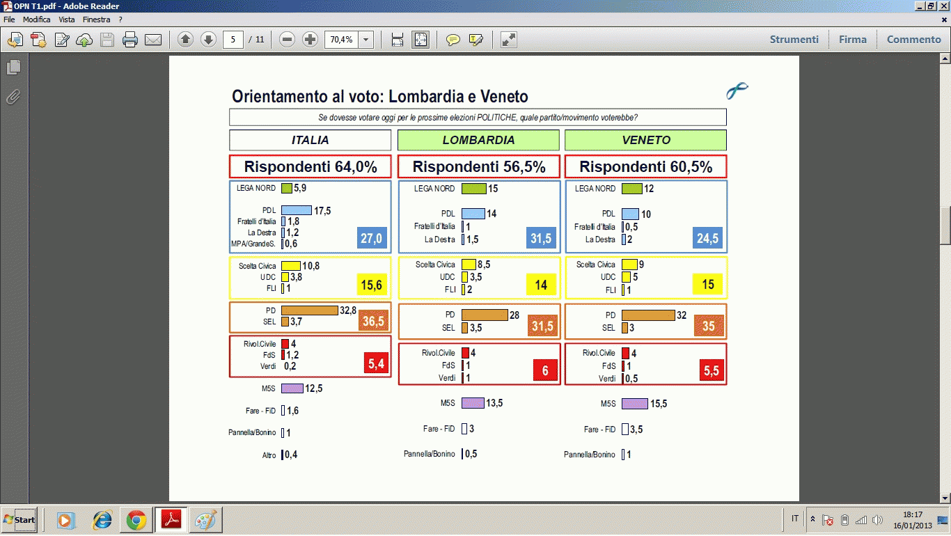 La Lega in Veneto per mantenere le proporzioni del 2008 con la media nazionale dovrebbe essere al 18%. 6% è tantissimo, per compensare vuol dire che è all'11% in Emilia Romagna? Mahhh
